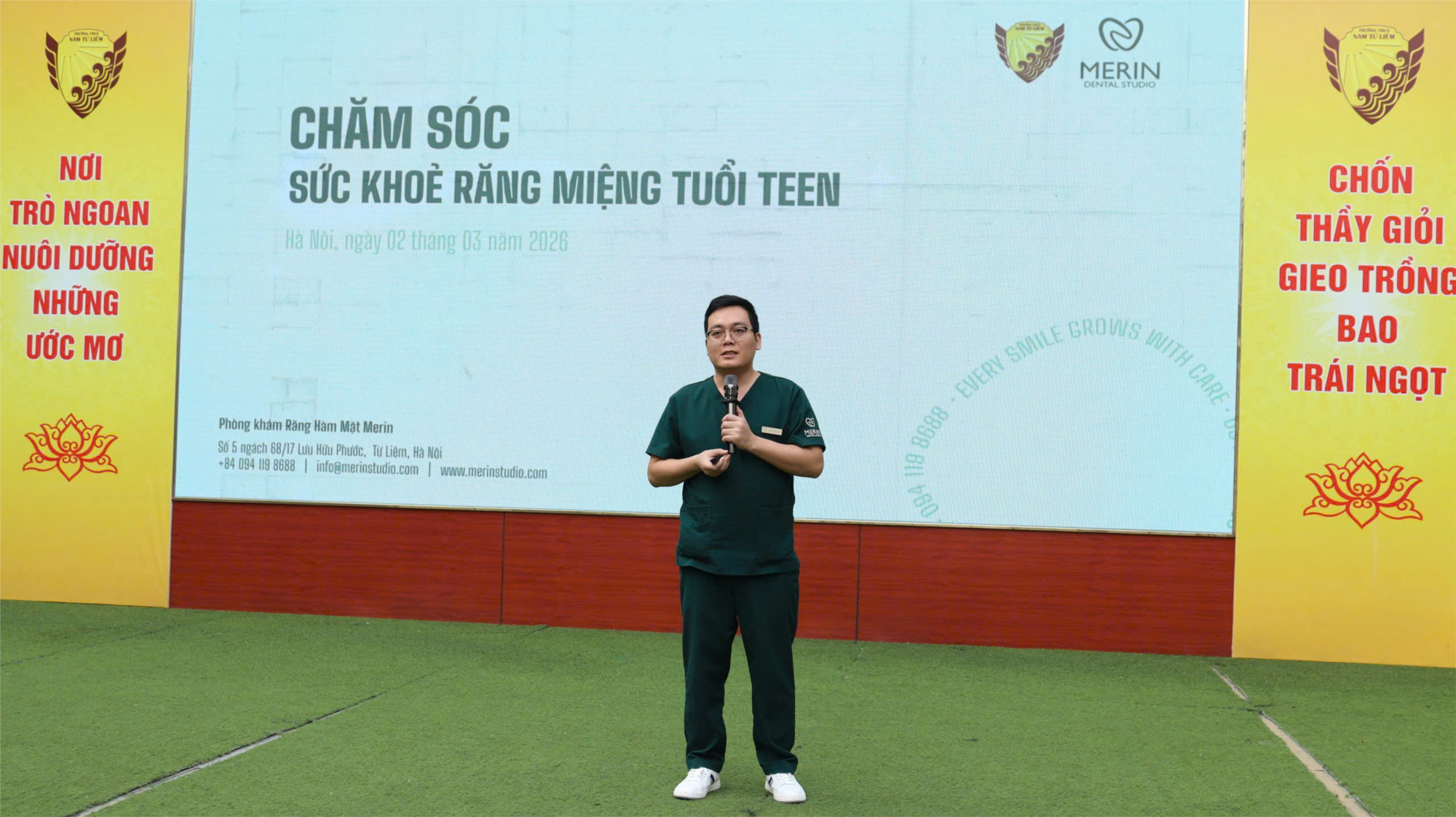 Thực hiện Kế hoạch công tác Y tế năm học 2025 – 2026, ngày 02/3/2026, nhà trườngđã phối hợp cùng Phòng khám Răng Hàm Mặt Merin tổ chức chương trình khám răng miệng miễn phí cho học sinh toàn trường.
